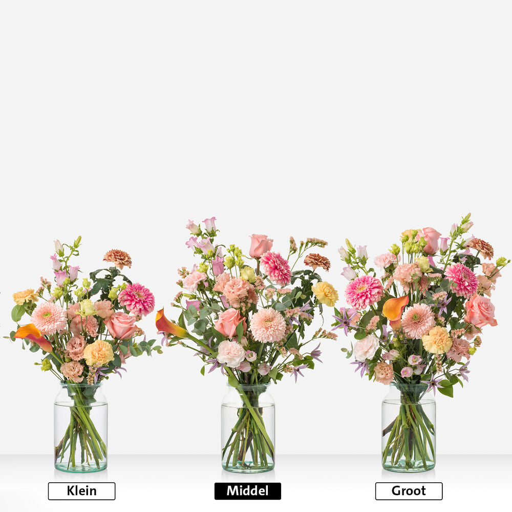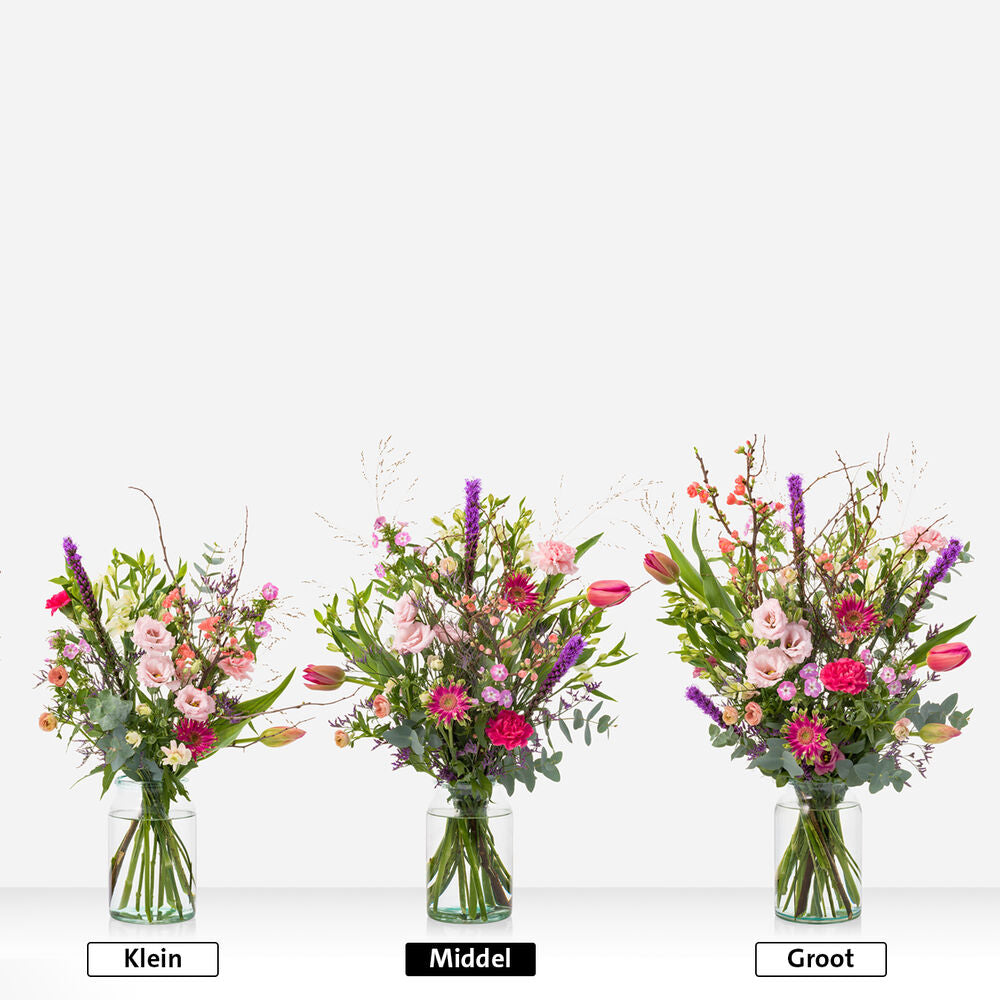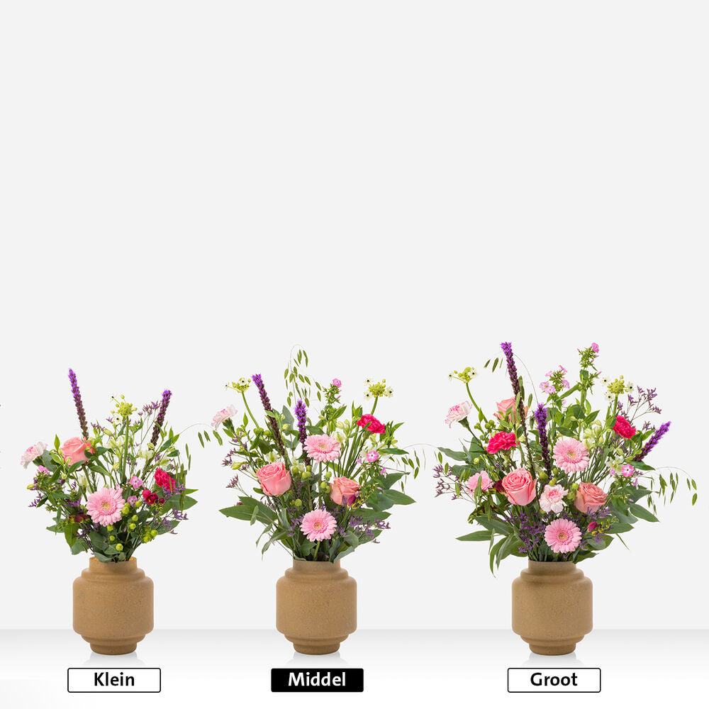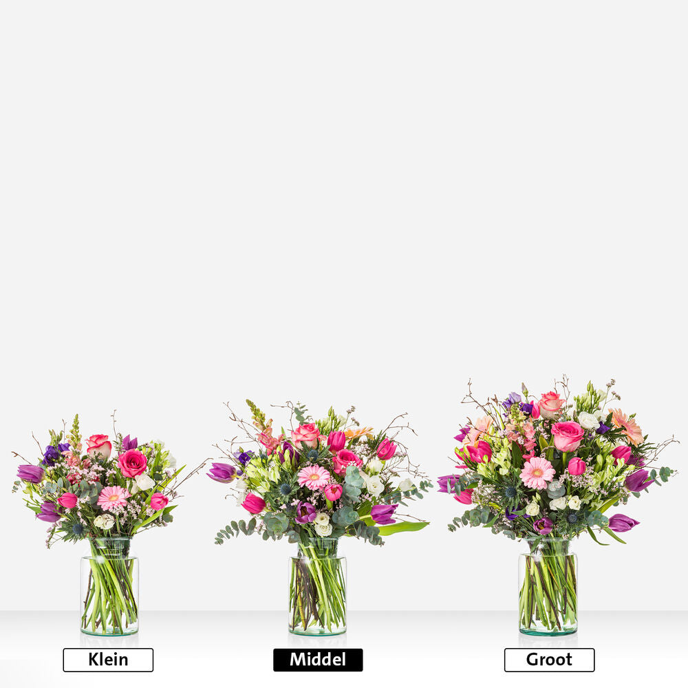 What a showpiece! This colourful Mother's Day arrangement with the most beautiful seasonal flowers is a real picture. Ideal for the sideboard or dining table. A real eye-catcher! The Mother's Day Flower Arrangement is personally and lovingly assembled by our florists. A unique flower arrangement and perfect as a gift for yourself or someone else. The flower arrangement is supplied with a pot (this may differ from the photo).