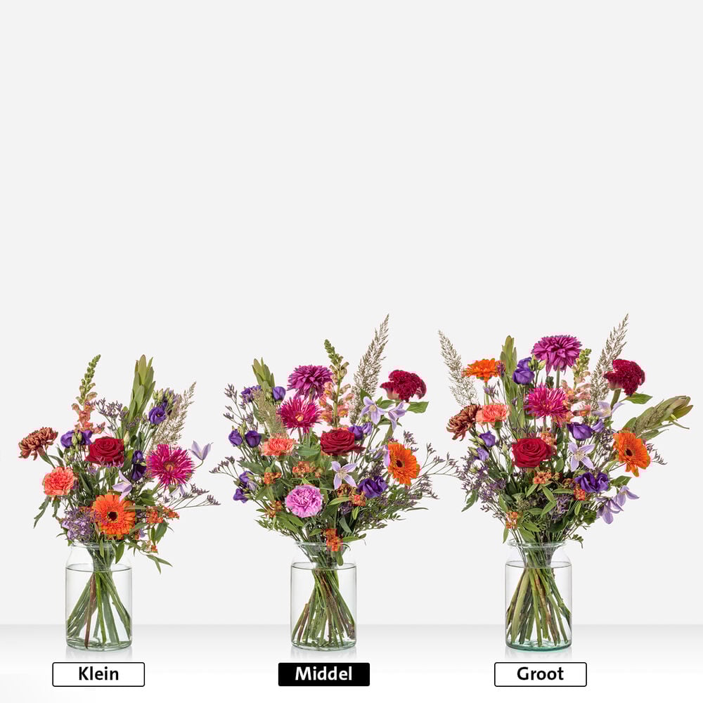 Laat de warme kleuren van het najaar tot leven komen met dit prachtige maandboeket vol met de mooiste seizoensbloemen. Het maandboeket van november weerspiegelt de rijke schakeringen van het najaar en brengt instant warmte en gezelligheid in je interieur. Het perfecte boeket om jezelf of iemand anders mee te verblijden. De warme tinten van onder meer de gerbera, dahlia en anjer maken van dit boeket een absolute aanrader.